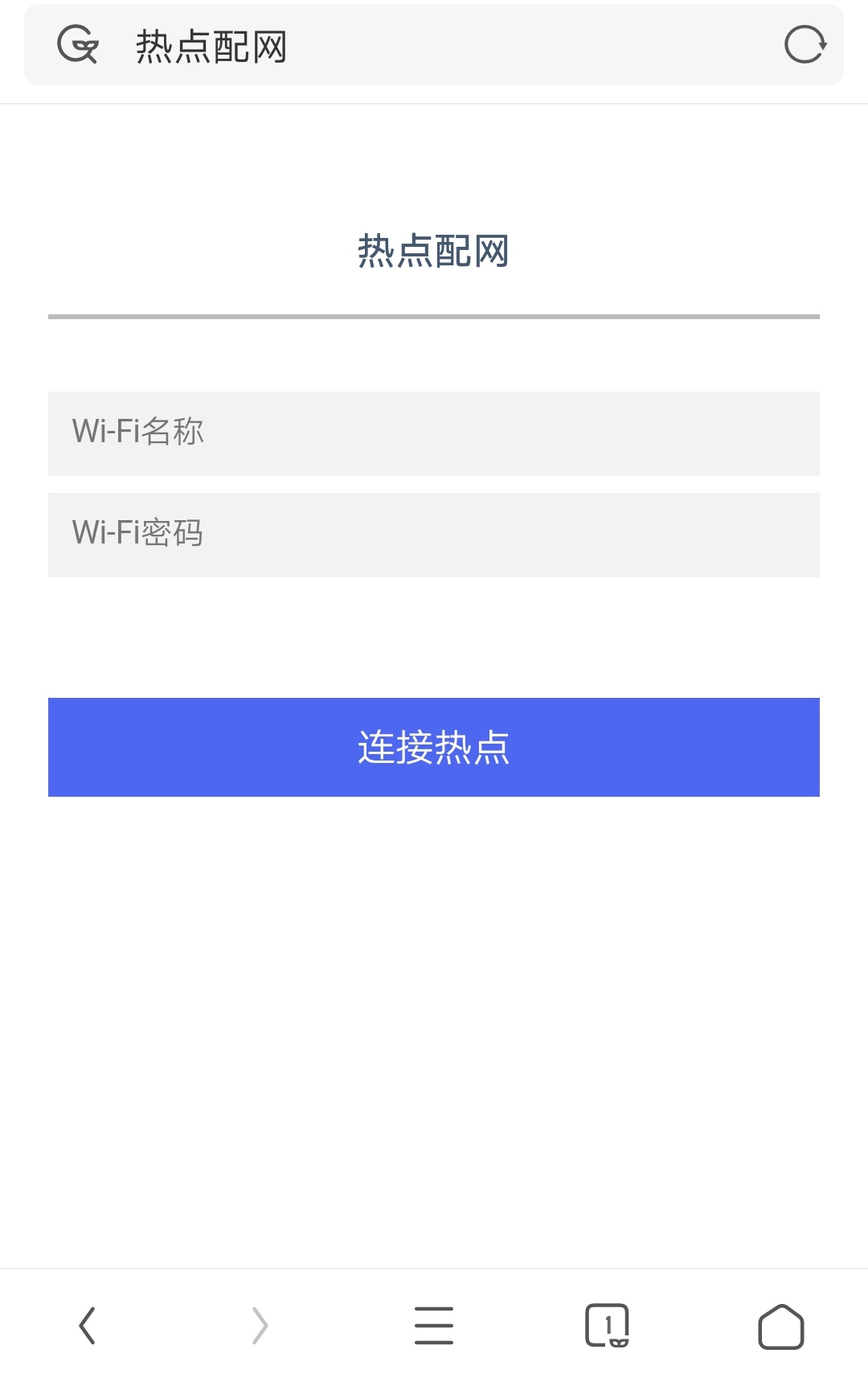 (4) 使用手机浏览器,地址栏输入192.168.1.1,在打开的页面输入音箱将要连接的WIFI/热点帐号及密码,输入完成后点击【连接】按钮,页面显示“热点配网完成,请关注语音提示。”。如下图所示: