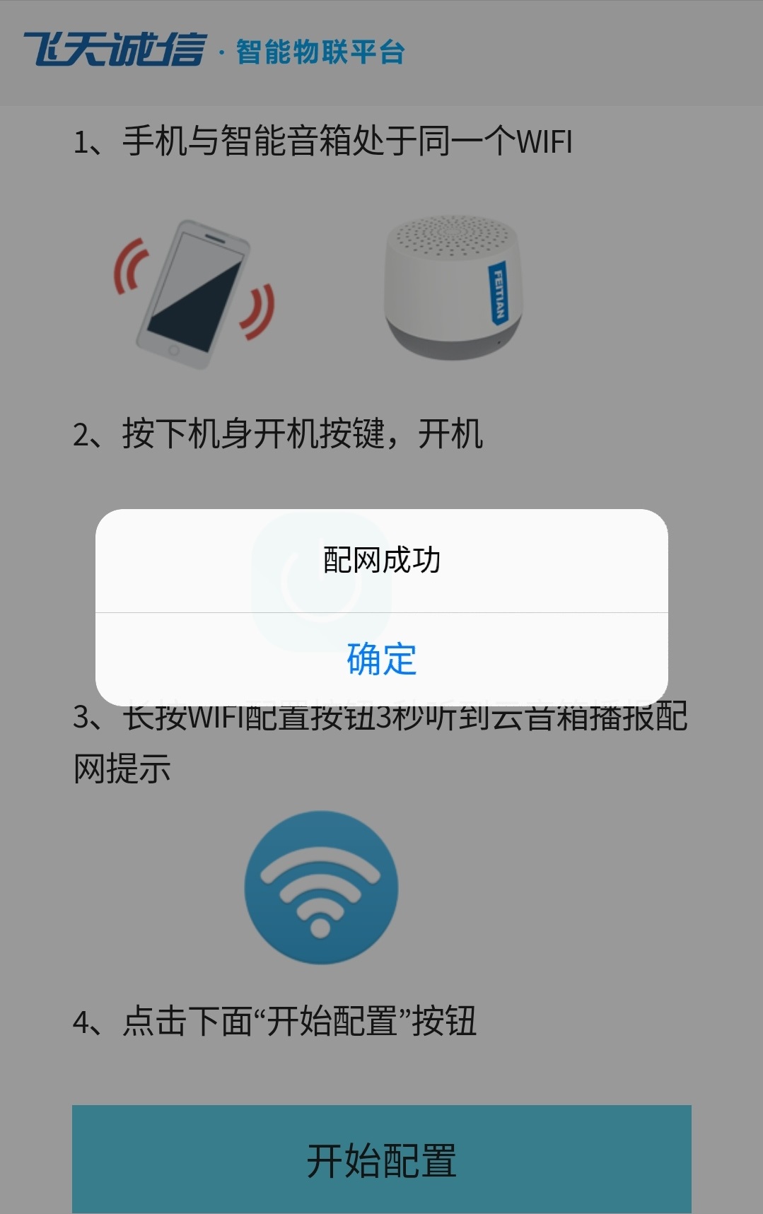 (3) 此时,音箱配网成功,在听到服务连接成功后方可使用。