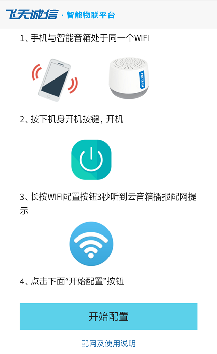 (1) 音箱开机后,长按WIFI配置按钮